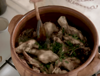 Remove the rabbit with a large slotted spoon, and set aside on a large plate. Place the remaining rabbit in the pot, and cook just as you did in preceeding step.