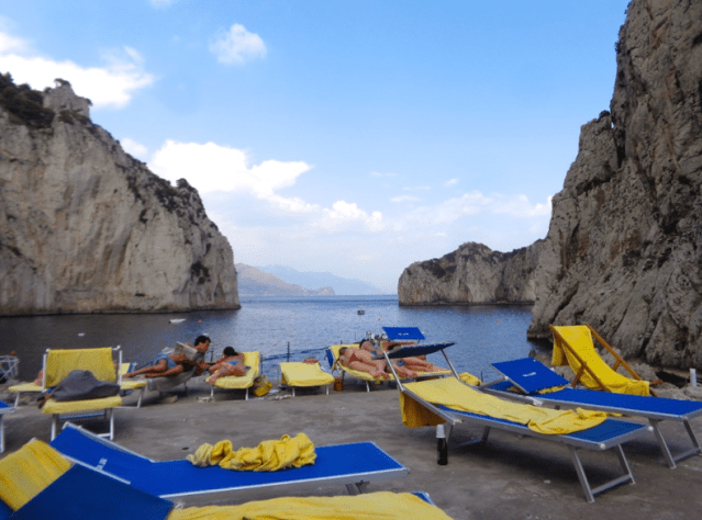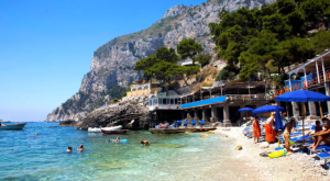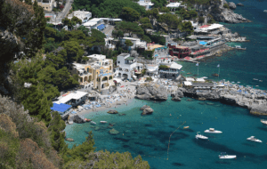 Marina Piccola is a very popular beach area on the south side of Capri. There are a few different little beach areas here, some are free and some private and require a fee for use of the beach with chaise lounge for the day. The area has several nice little restaurants and caffes, and you can catch boats here to bring you to Marina Grande or the Fargloni Rocks where there are a couple nice beach areas there as well. You can also rent boats here to take on your own, or take a Gozzo Boat with captain.